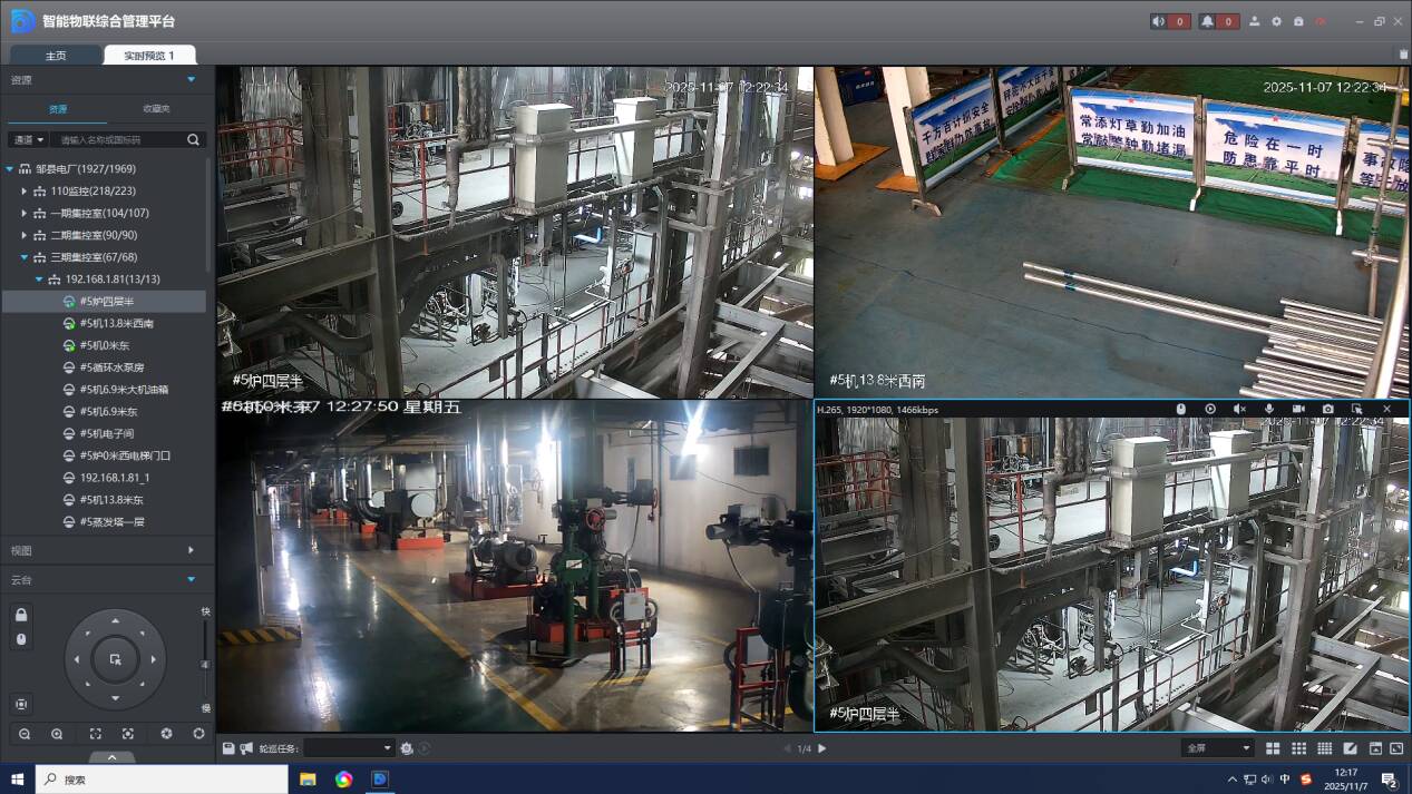 在人员管理层面,系统通过280个5G+UWB定位基站与30台5G智能安全帽,精准实现人员厘米级定位、电子围栏预警与应急SOS一键联动,构筑起立体化人员安全防护网。在此基础上,统一搭建的安全管理平台整合全厂数据资源,推动安全管理模式由“事后处置”向“事前预防”深刻转变。