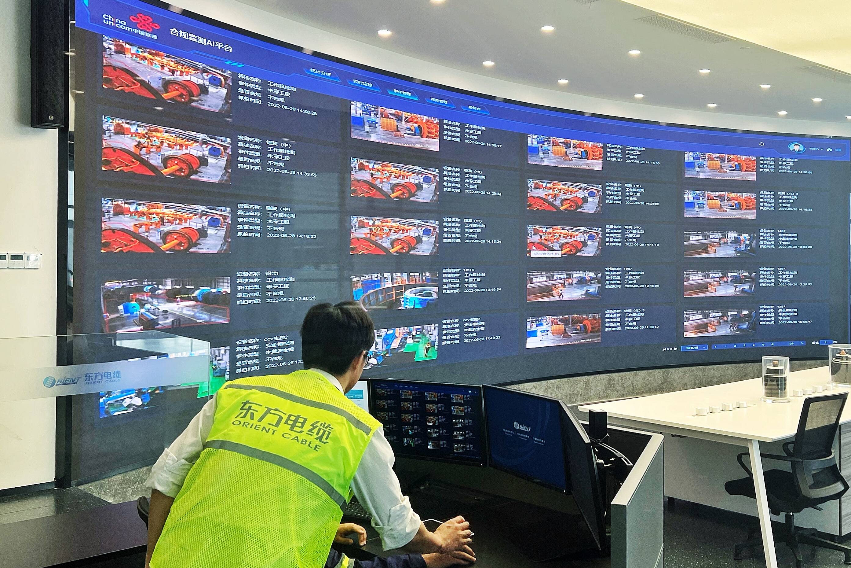 “未来工厂”还通过联通5G网络全覆盖,实现海缆立式成缆旋转生产实时监控;采用工业视觉+AI算法,实现传统机械仪表数据采集、分析与安全预警,为生产提供全数据支撑。
