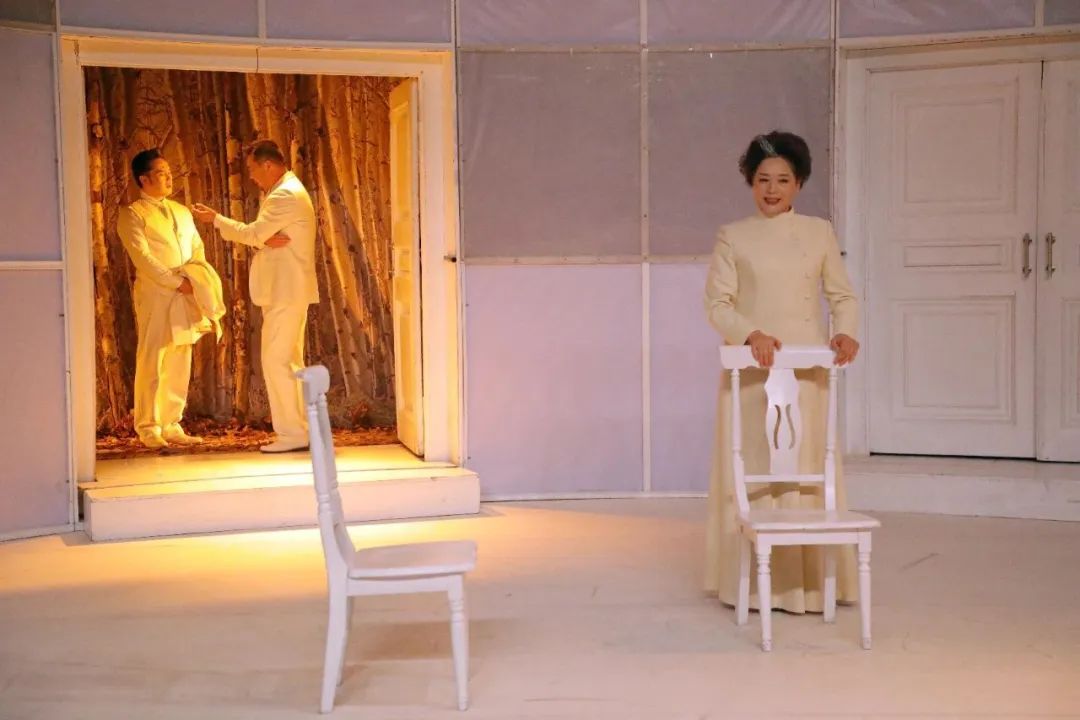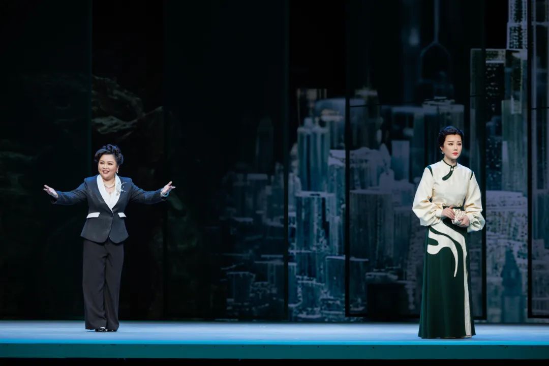 剧目从当代切入,以老年王秀兰的回忆为导引,穿插叙述不同历史时期(1958年和1991年)的故事,将过去与当代交织呈现,全景式构建了跨越六十多年的生动史诗。舞美方面冰屏、镜像、舞台机械、智能遥控的使用,给戏曲演员表演提供更多突破的可能与空间,具有“记忆的闸门”象征性的动态冰屏的运用让舞台叙述更加流畅自如,在呈现方式上兼具戏曲韵味与现代科技感。