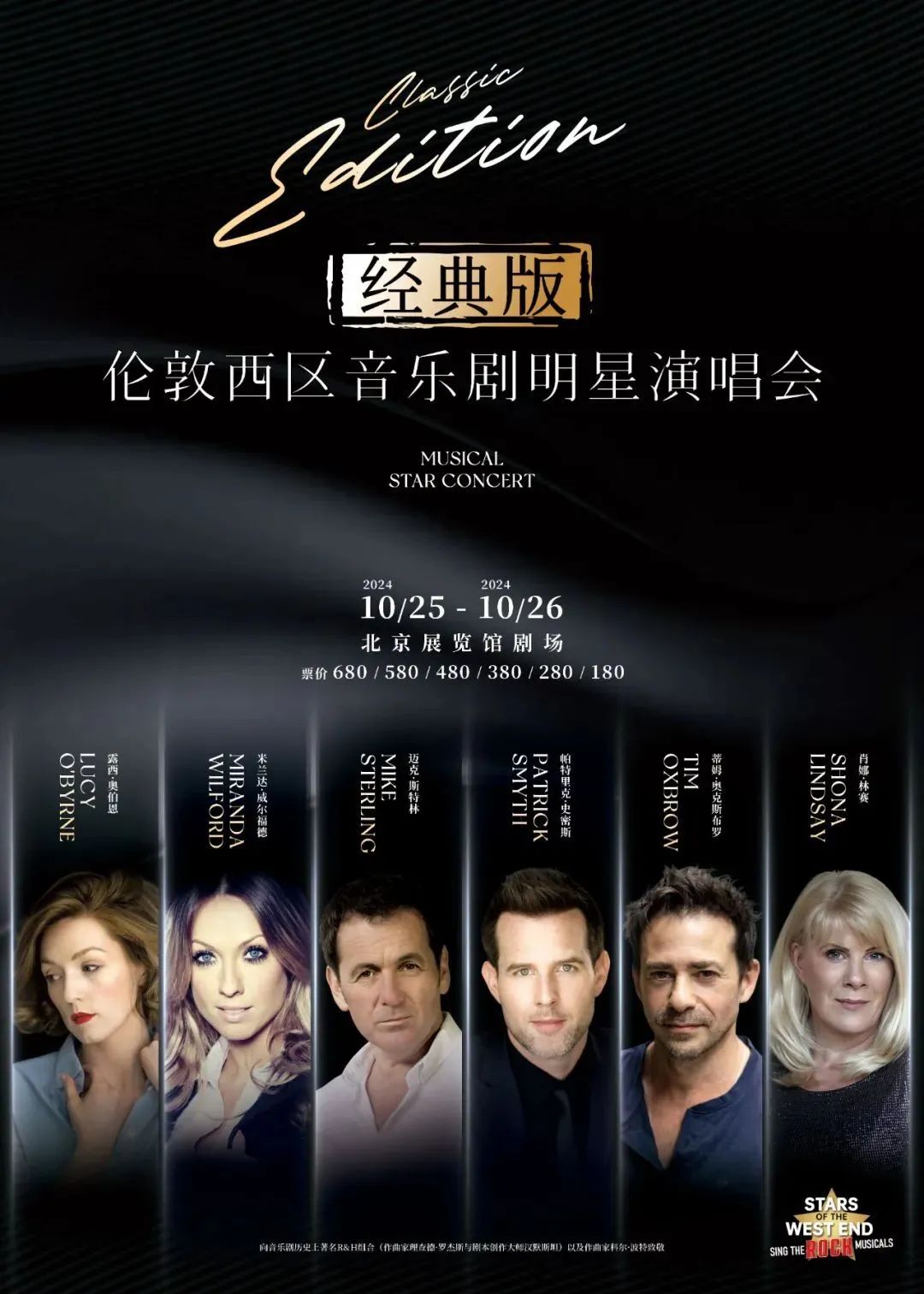 由出演过1000场《剧院魅影》的知名音乐剧明星迈克·斯特林、饰演《剧院魅影》中克里斯汀一角的肖娜·琳赛、出演《猫》《悲惨世界》的露西·奥伯恩、出演《摇滚时代》《吉屋出租》的蒂姆·奥克斯布罗、出演《保镖》的乔艾琳·莫西斯、出演《小事大事》的斯蒂芬·约翰·戴维斯共同倾情演绎!原班英国乐队现场伴奏!