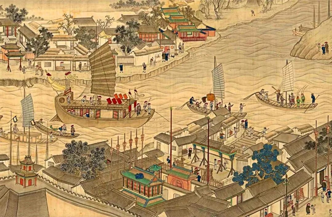 潞河督运图 卷(局部),江萱 清 乾隆年间,绢本 设色,纵41.5厘米 横680厘米,中国国家博物馆藏